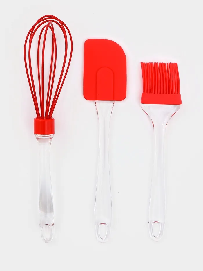 Набор для выпечки Доляна «Лёд», 3 предмета: лопатка 23.5 см, кисть 20.5 см, венчик 25 см, красный