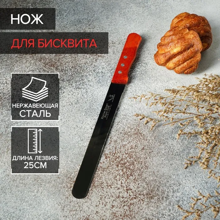 Нож для бисквита ровный край KONFINETTA, длина лезвия 30 см, деревянная ручка