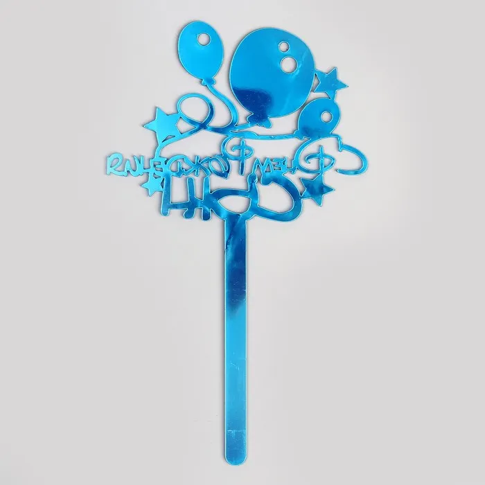 Топпер для торта акрил «С Днём Рождения», голография, 15 см