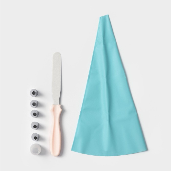 Набор кондитерский, 8 предметов: 5 насадок, адаптер, мешок, шпатель, насадки, цвет МИКС