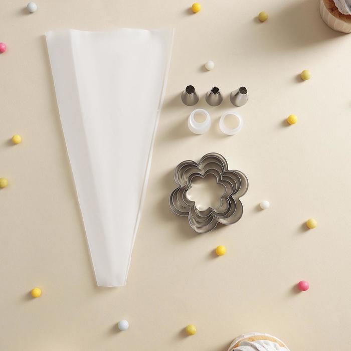 Набор кондитерский «Лориэн», 10 предметов: форма для выпечки «Цветок» 5 шт, 3 насадки, адаптер, мешок