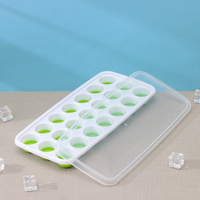 Форма для льда и шоколада с крышкой Доляна, 26×12×2.5 см, 21 ячейка (3×3×2 см), зелёная