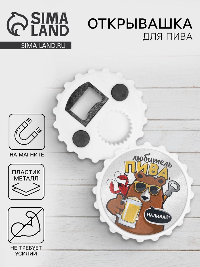 Открывашка для пива на магните «Любитель пива», d=7 см