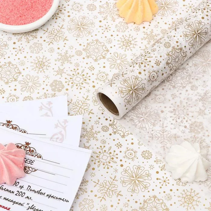 Бумага силиконизированная «Снежинки», золотые, для выпечки, 0.38×5 м