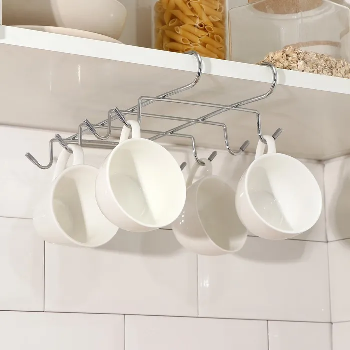 Держатель для кружек подвесной Доляна, на 8 предметов, 27.5×20×7.5 см, на толщину полки 3.5 см, хромированный