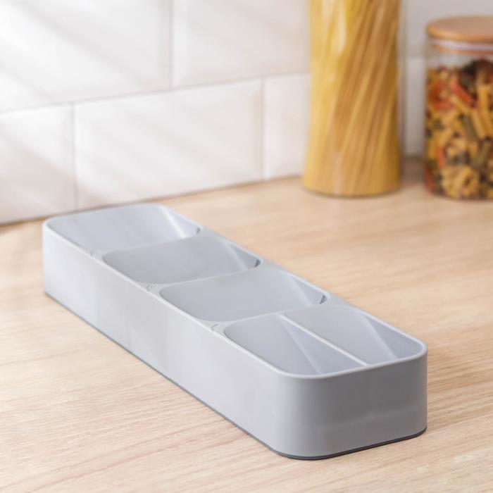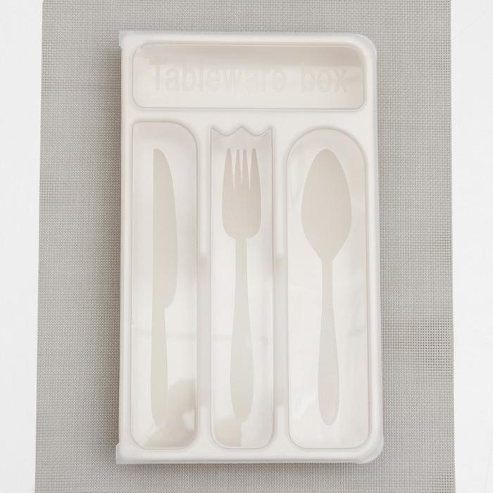 Лоток для столовых приборов с крышкой Доляна, 4 секции, пластик, 30×18×4.5 см, молочный