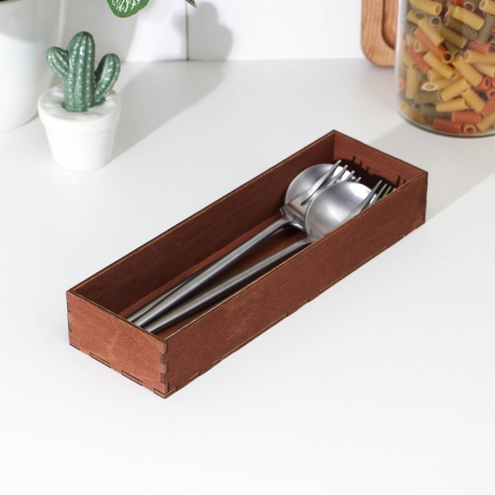 Лоток деревянный для подачи столовых приборов Доляна, 25×8×4 см, цвет мокко