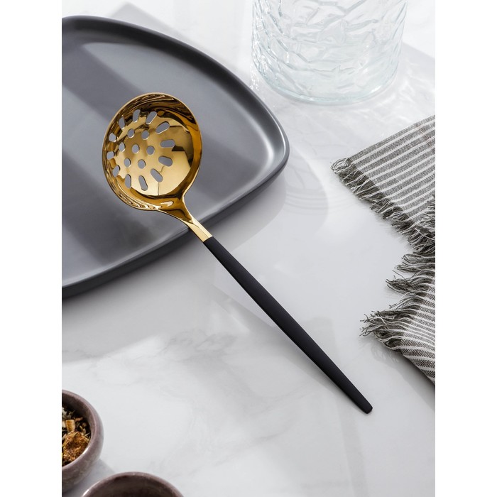 Шумовка из нержавеющей стали Magistro «Грэйс», h=24,5 см, цвет ручки чёрный, цвет головы золотой