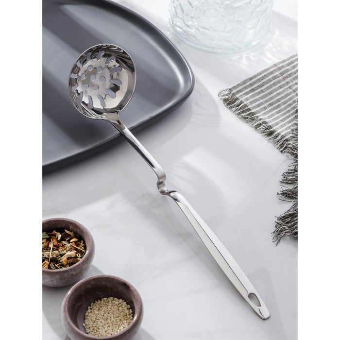 Шумовка Доляна Simple, h=28 см, цвет серебряный