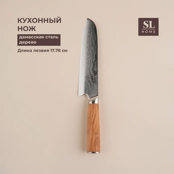 Нож кухонный SL Home «Оливия», сантоку, лезвие 17.78 см, дамасская сталь, коричневый