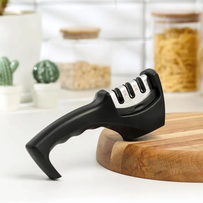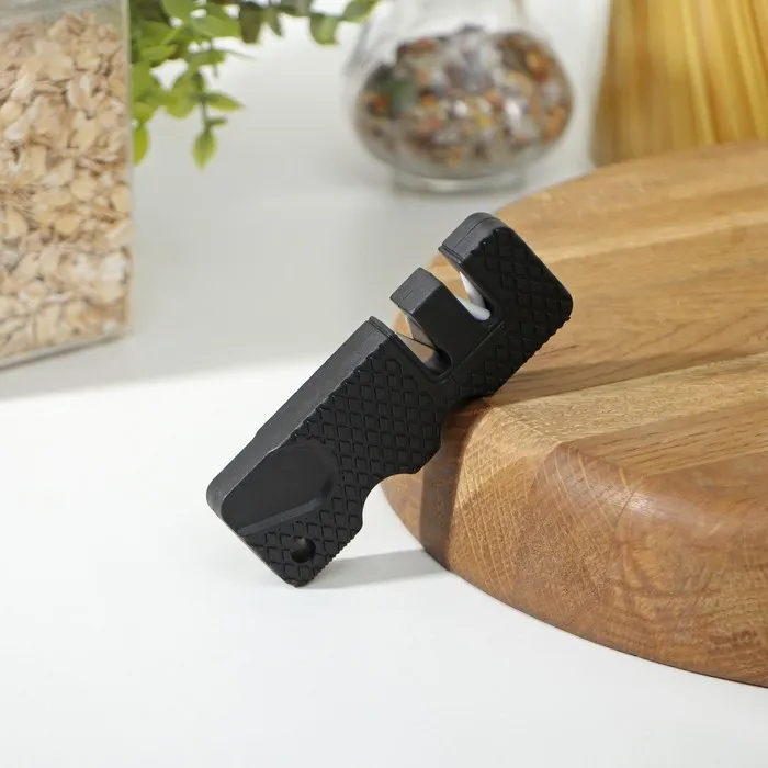 Точилка для ножей Доляна «Ловкач», 2 деления, чёрная