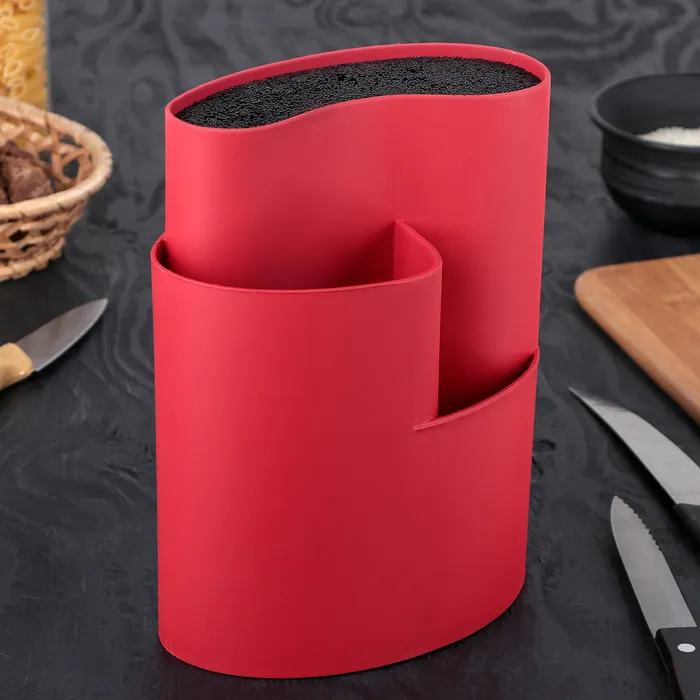 Подставка для ножей с наполнителем Доляна «Зефир», 11×18 см, красная