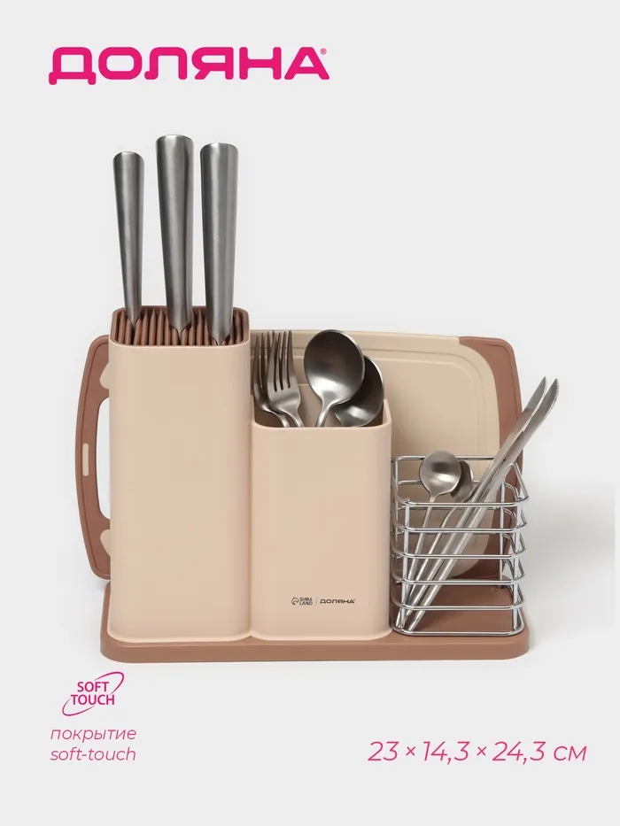 Подставка для ножей и столовых приборов Доляна «Нежность», пластик, бежевая