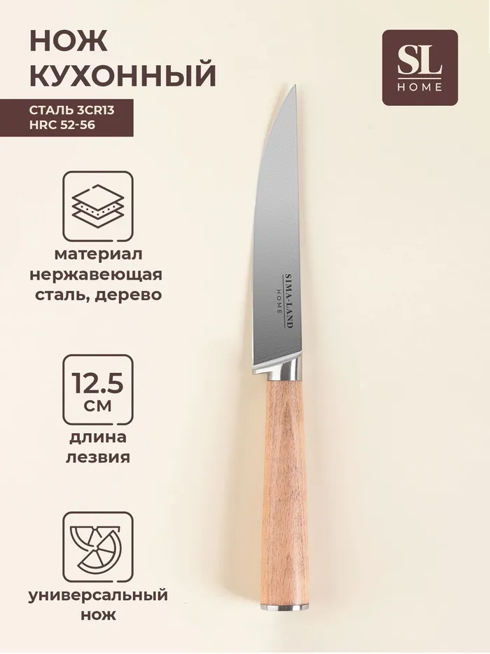 Нож кухонный универсальный SL Home «Калабрия», нержавеющая сталь, 12.5 см, бежевый