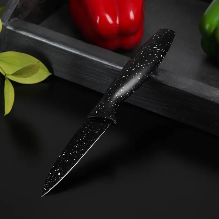 Нож с антиналипающим покрытием Доляна «Зефир», для овощей, лезвие 9 см, чёрный