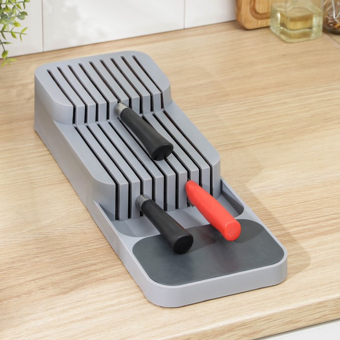 Подставка для ножей с наполнителем Доляна «Нео», 22×11 см, покрытие soft-touch, цвет серый