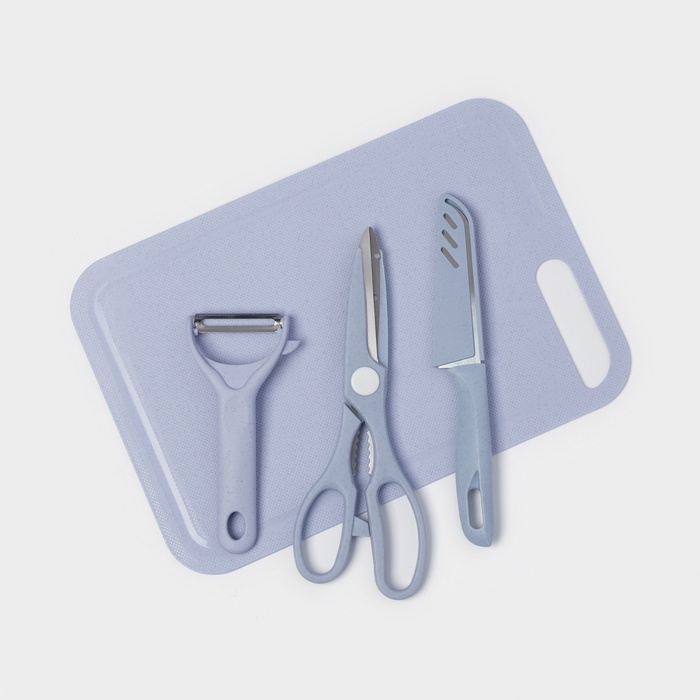 Набор кухонных принадлежностей «Для кухни», 4 предмета: доска, нож, ножницы, овощечистка, МИКС