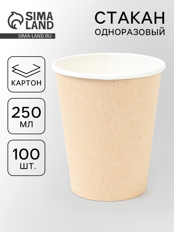 МП Стакан бумажный одноразовый «Крафт» 250 мл, диаметр 80 мм (100 шт.)