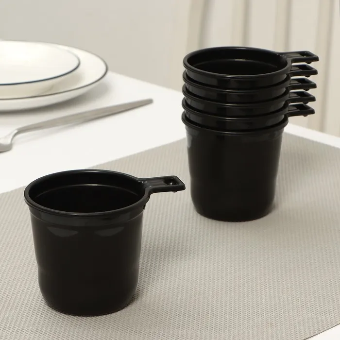 Чашки кофейные пластиковые одноразовые Не ЗАБЫЛИ! «Взбодрись», 200 мл, в наборе 6 шт, чёрные и коричневые с белым
