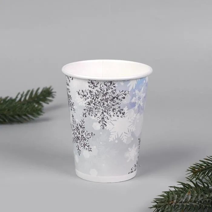 Стакан бумажный одноразовый «Снежинки», 200 мл, набор 6 шт.