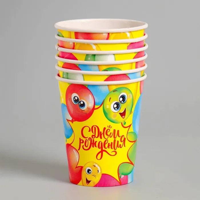 Стакан одноразовый бумажный «С днём рождения», набор 6 шт., 250 мл