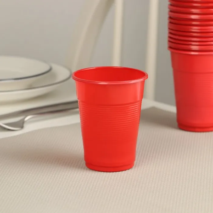 Стакан одноразовый пластиковый «Мопс», 200 мл, красный