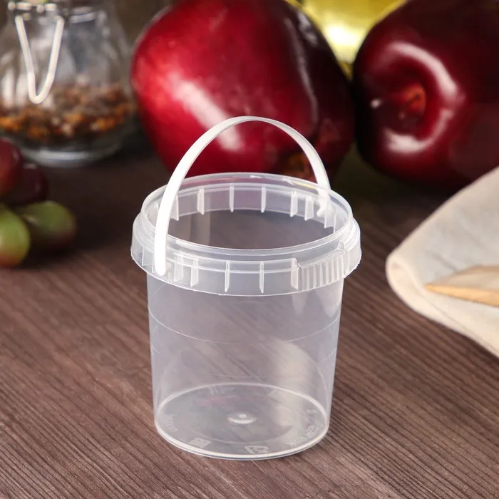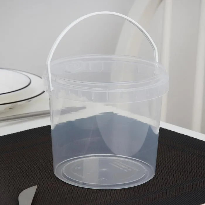 Ведро с ручкой одноразовое, пластик, 1 л, пищевое, прозрачное