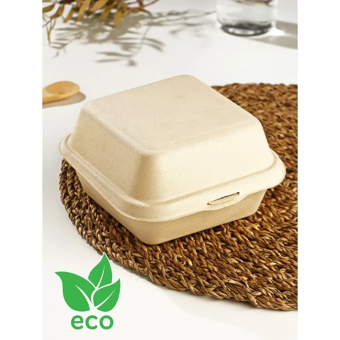Ланч - бокс для бенто - торта и бургера Доляна, 450 мл, 14.5×14.5 см, неразъёмная крышка, сахарный тростник