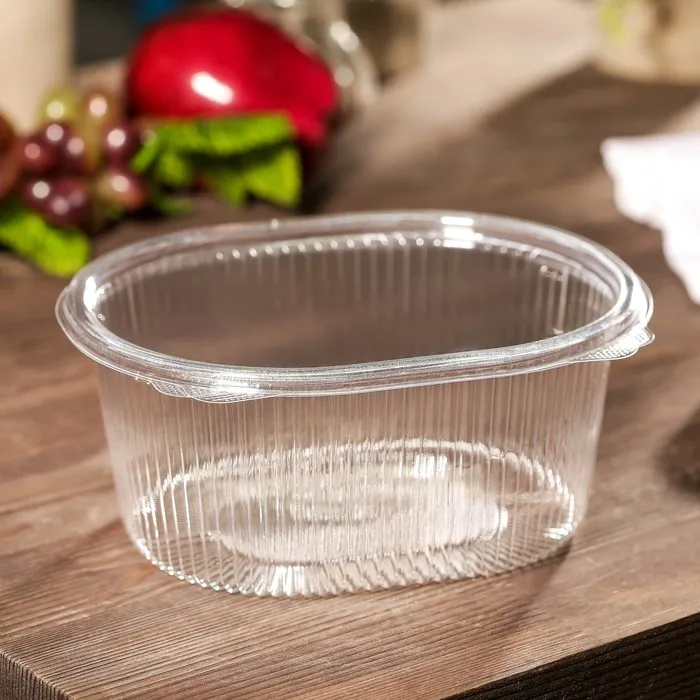 Контейнер одноразовый с неразъёмной крышкой, пластик, 1 л, 17.5×14.9×7.9 см, прозрачный