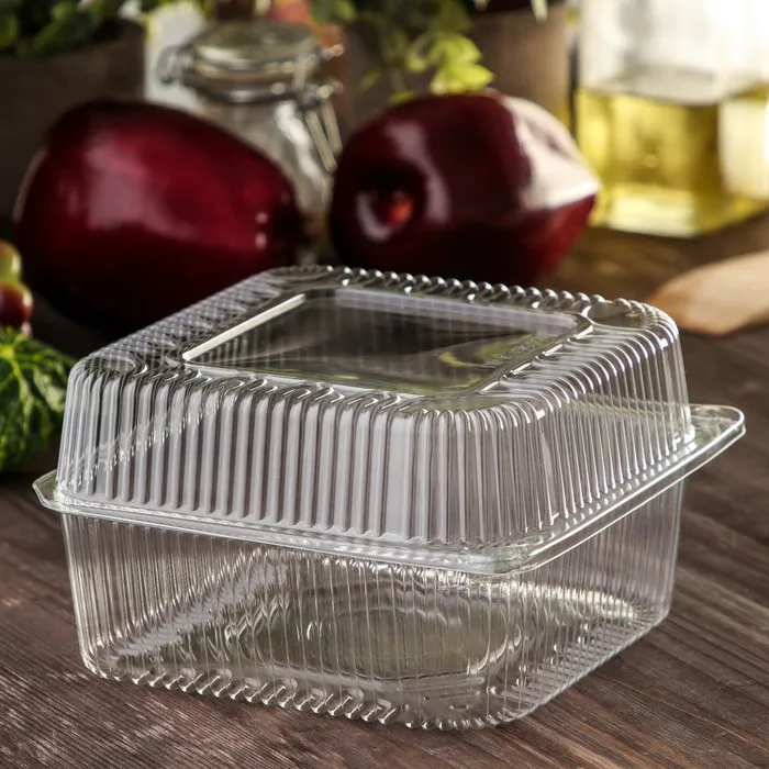 Контейнер одноразовый с неразъёмной крышкой ПР-К-7 А, пластик, 250 мл, 21.5×13.5×7.2 см, прозрачный