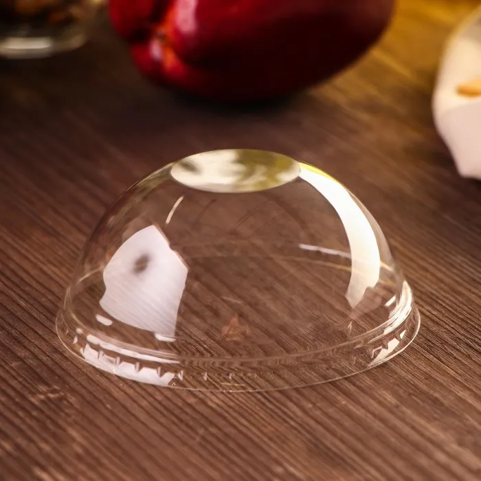 Крышка купольная пластиковая одноразовая ПЭТ, без отверстия d=9,5 см, прозрачная