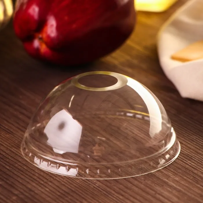 Крышка купольная пластиковая одноразовая ПЭТ, с отверстием для трубочки, d=9,5 см, прозрачная