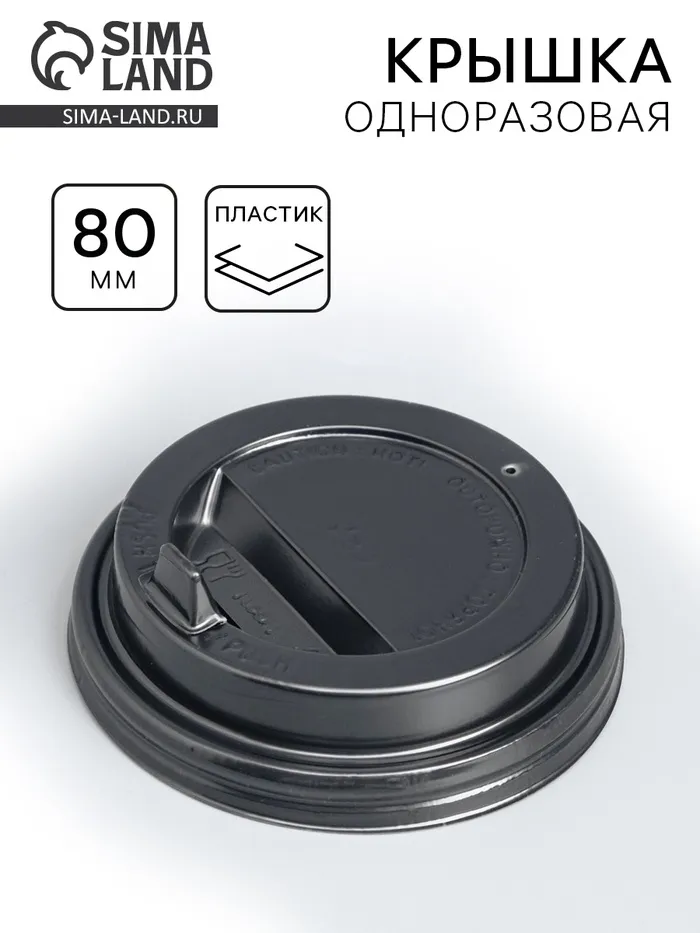 Крышка пластиковая одноразовая для стакана чёрная, с клапаном, d=8 см