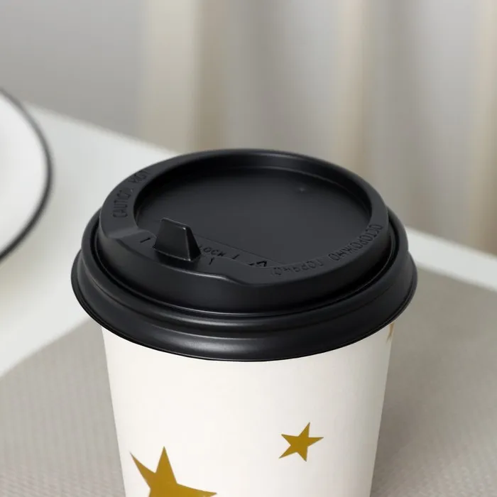 Крышка пластиковая одноразовая для стакана чёрная, с клапаном, d=9 см