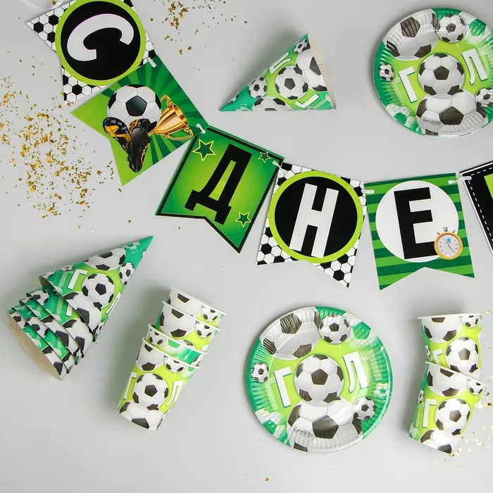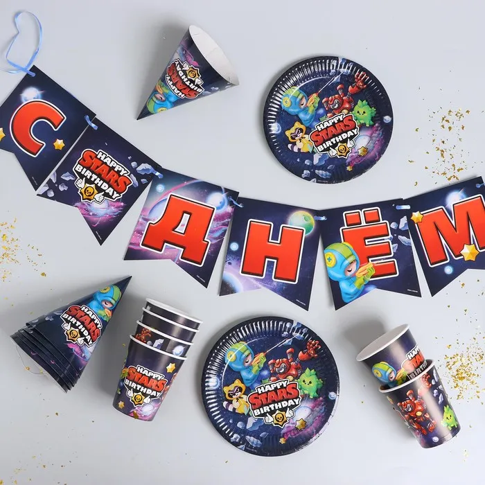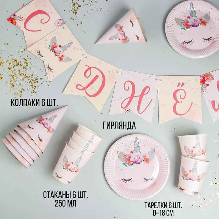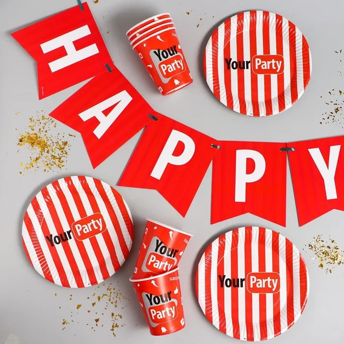 Посуда одноразовая бумажная Your party, 6 тарелок, 6 стаканов, 1 гирлянда