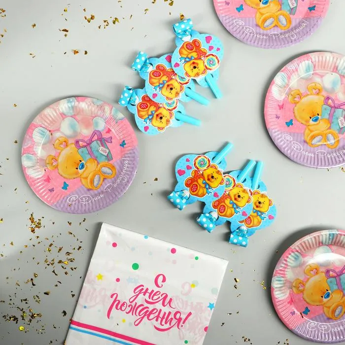 Набор бумажной посуды «Мишутка», 6 тарелок, скатерть, 6 язычков