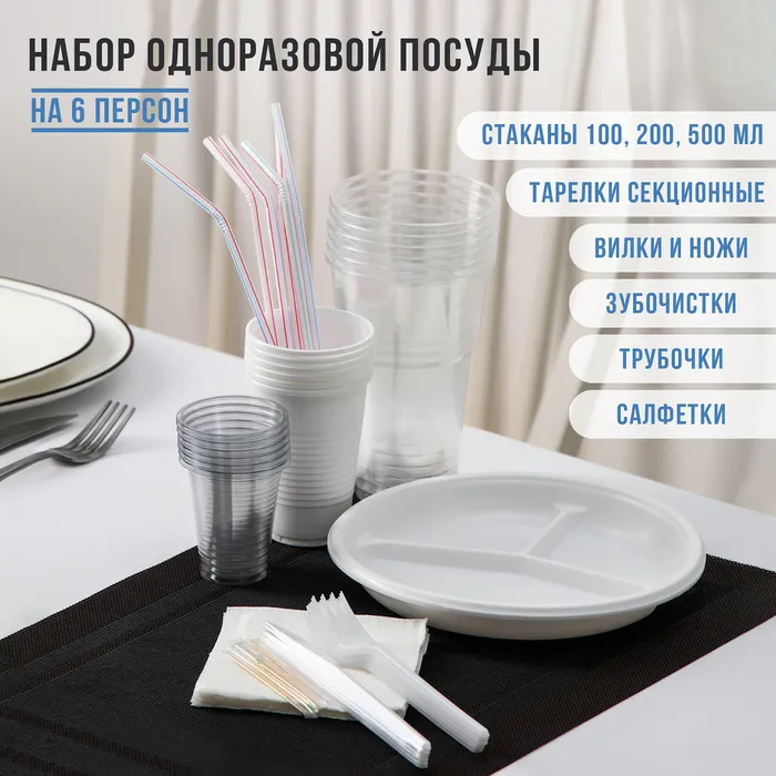 Набор пластиковой одноразовой посуды на 6 персон Не ЗАБЫЛИ! «Биг-Пак №2», белый