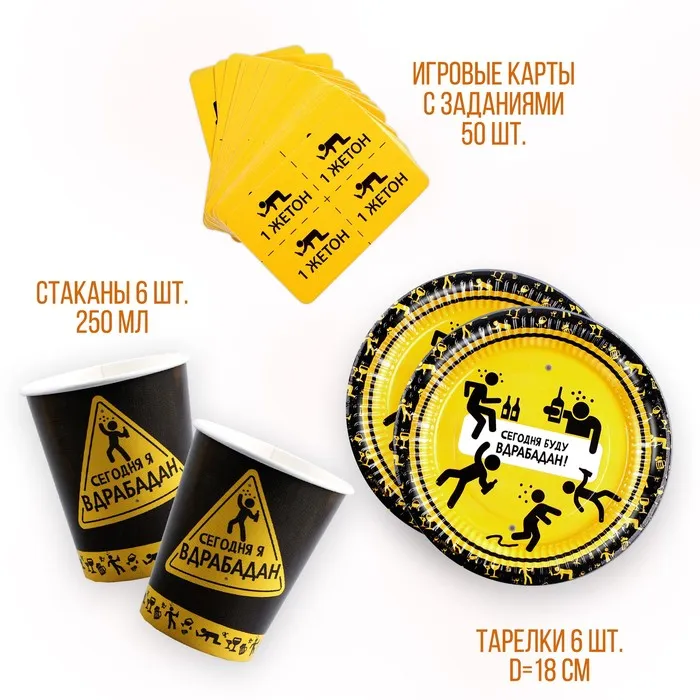 Набор бумажной посуды одноразовый Сегодня буду вдрабадан»: 6 тарелок, 6 стаканов