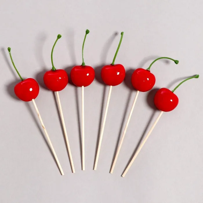 Шпажки для канапе «Вишня», в наборе 6 штук, красная