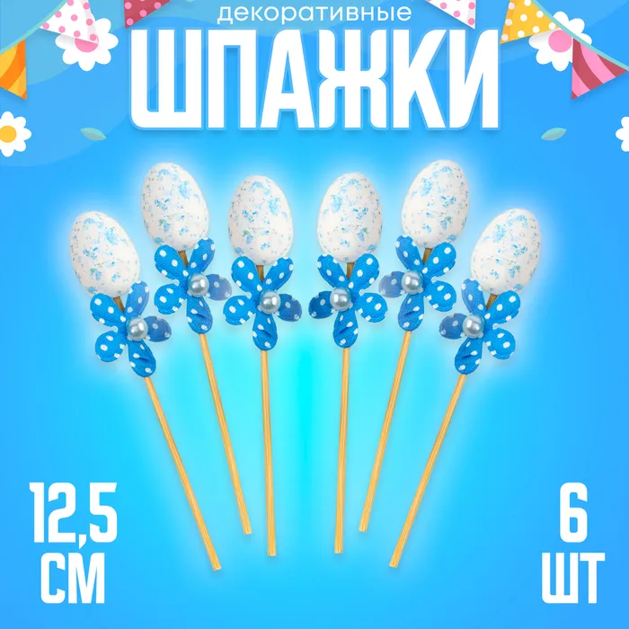 Шпажки на пасху «Яйцо», синий, набор 6 шт.