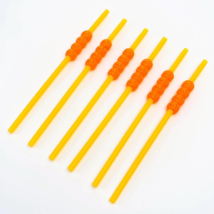 Трубочки для коктейля «Тыква», оранжевая, набор 6 шт.
