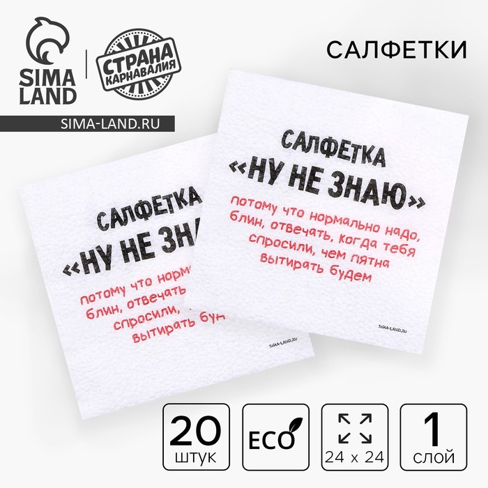 Салфетки бумажные однослойные «Ну, не знаю», 24 × 24 см, в наборе 20 шт.