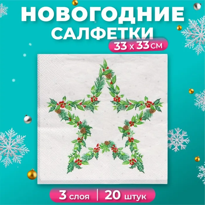 Салфетки бумажные «Новогодняя сказка», 3 слоя, 33×33 см, 20 шт.