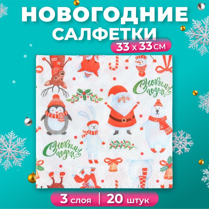 Салфетки новогодние бумажные Pero Prestige «Веселые друзья», 3 слоя, 33х33 см, 20 шт