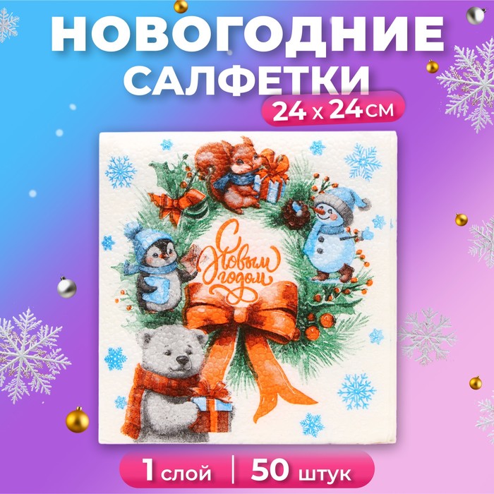 Салфетки новогодние бумажные «С Новым годом» 1 слой, 24×24 см, 50 шт.