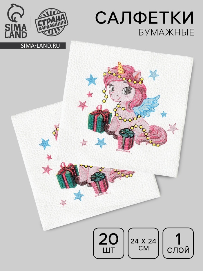 Салфетки бумажные «Лошадка с подарками», однослойные, 24×24 см, 20 шт.