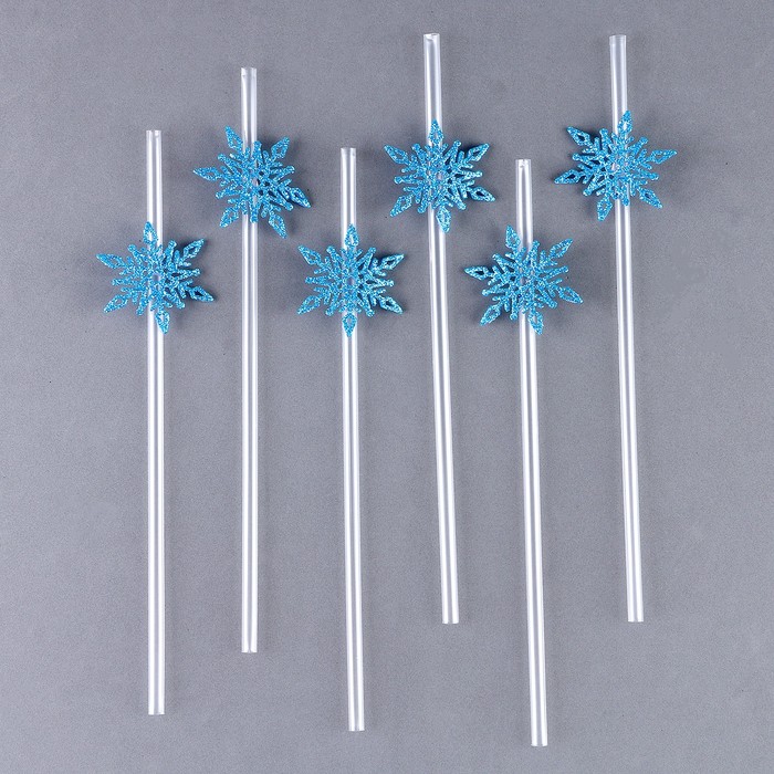 Трубочки для коктейлей одноразовые «Снежинки», в наборе 6 шт., голубые