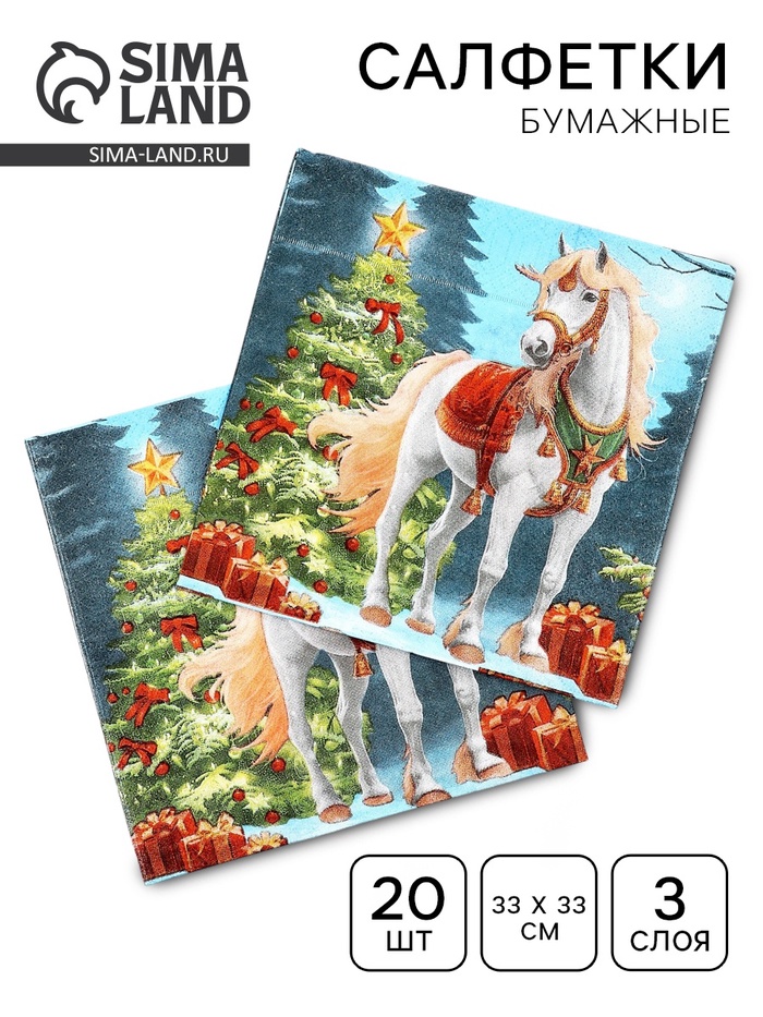 Салфетки бумажные «Белая лошадь с ёлкой», 33×33 см, 3 слоя 20 листов