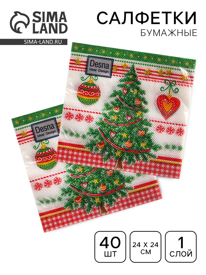 Салфетки бумажные Desna Design «Новогодняя ель», 1 слой, 24×24 см, 40 шт.
