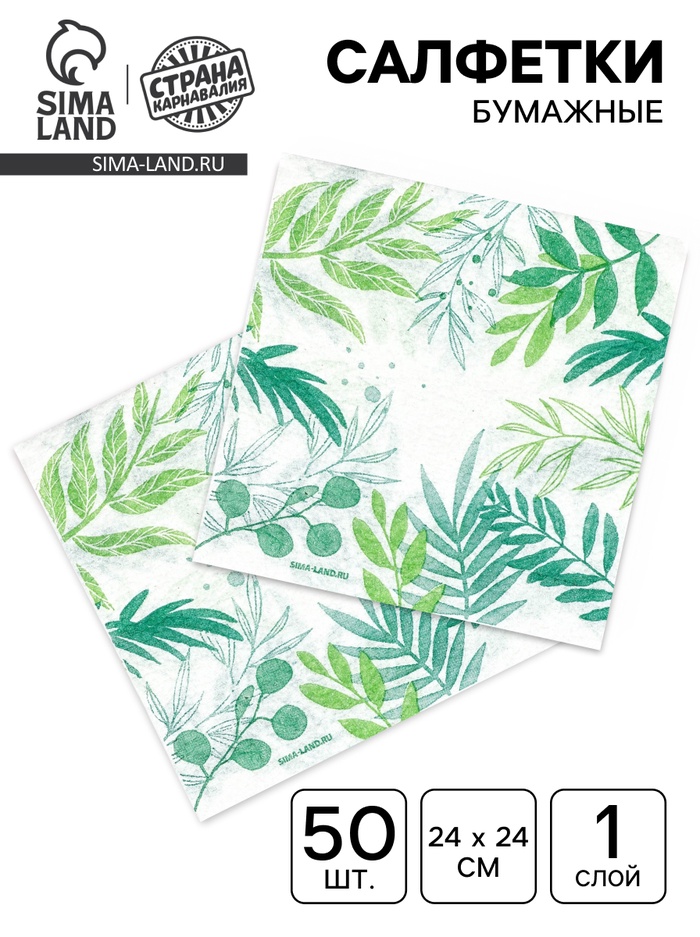 Салфетки бумажные однослойные «Узоры природы», 24×24 см, 50 шт.